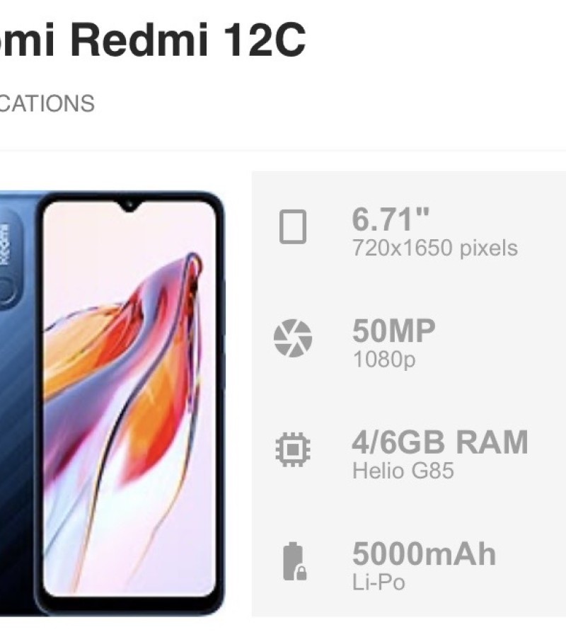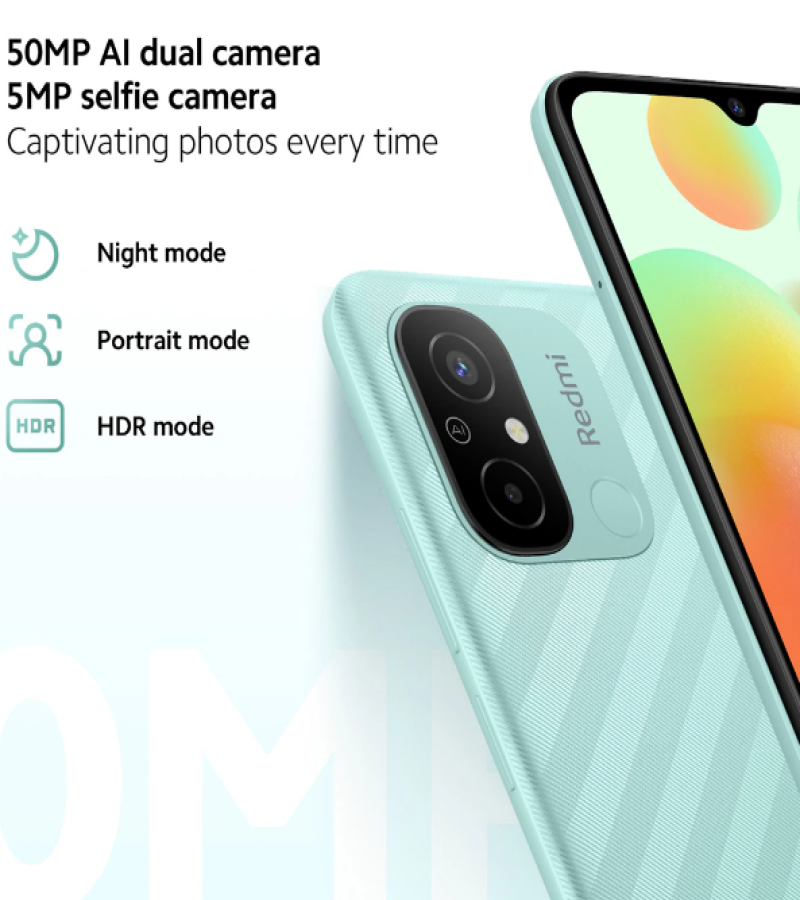 Xiaomi Redmi 12CKey Features AI Dual Camera Camera Samples Powerful Processor Enhanced SmoothnessMicroSD Card Support Go Big On Entertainment5000mAh Massive Battery Rear Fingerprint Sensor