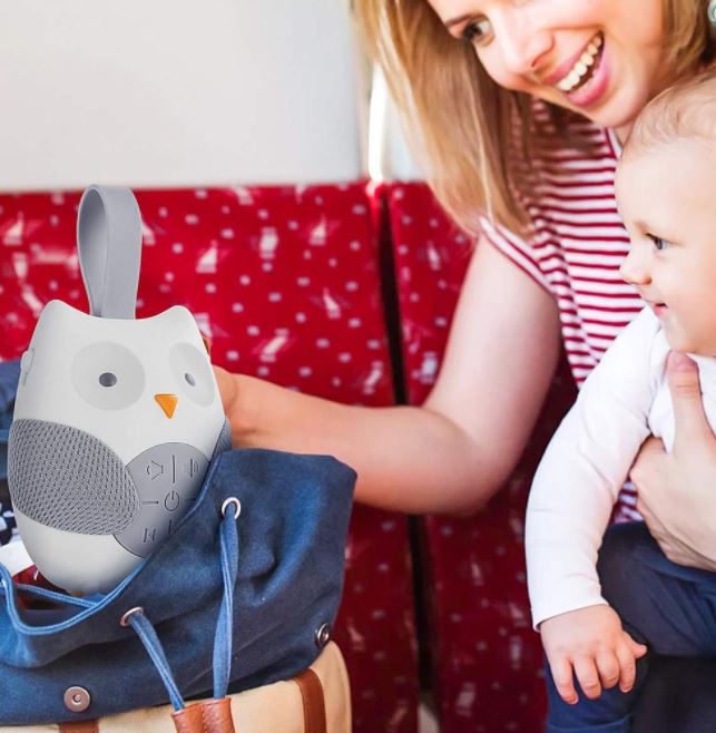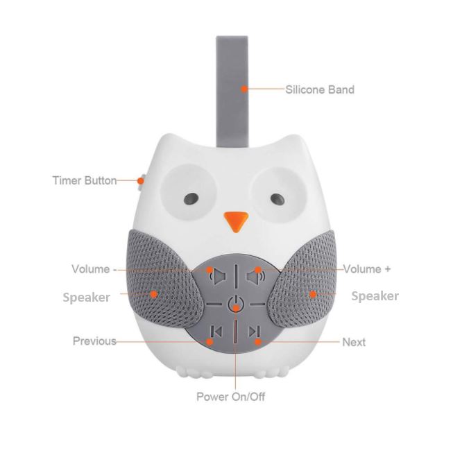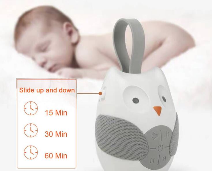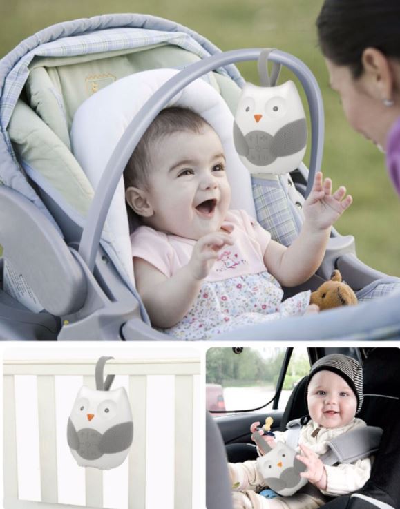 便携式婴儿安抚机便携式婴儿安抚音乐播放器猫头鹰形悬挂式婴儿推车睡眠舒适平静睡眠(免费3节AAA电池)